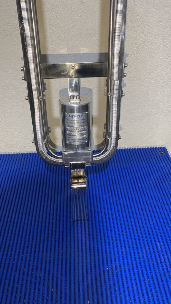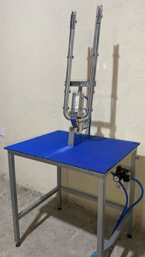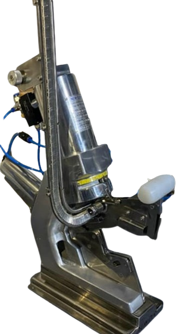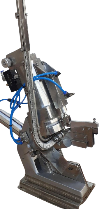 As grampeadeiras manuais são produzidas em aço inox dentro dos padrões exigidos pelo Ministério da Agricultura não utilizam ar comprimido e tem um mecanismo de acionamento simples através de uma alavanca. Ideal para pequenas produções. Fecha até 15 embalagens por minuto.
